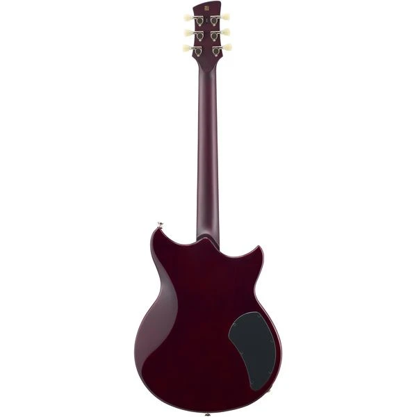 Yamaha Revstar RSS20 Lefthand Black; Lefthand Revstar e-guitar; standard Series; body: mahogany, chambered; top: maple; neck: 3-pc. mahagony, carbon reinforcemend; fingerboard: rosewood (dalbergia latifolia); neck mount: set; inlays: white lines; 22 jumbo stainless steel frets; nut: pps; nut width: 41,9 mm (1,65″); scale: 629 mm (24,76″); fingerbard radius: 305 mm (12″); pickguard: 3-ply black; pickups: VH5b Alnico 5 humbucker (bridge), VH5n Alnico 5 humbucker (neck); controls: master volume, master tone (push/pull for focus); switch: 5-way; bridge: tune-o-matic with stopbar tailpiece; hardware finish: chrome; tuners: die-cast; incl. gig bag; colour: black; stock strings: elixir nanoweb light 010 – .046 (Art. 152175)